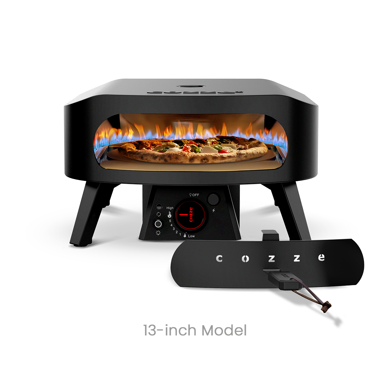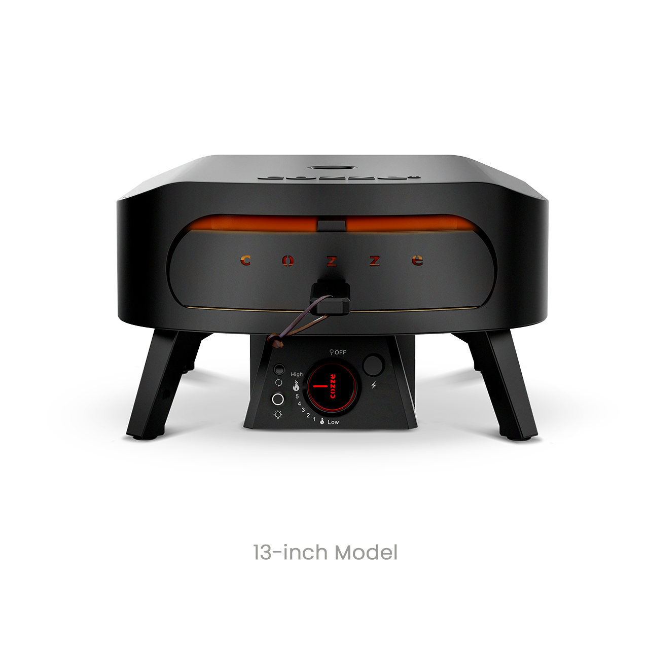 • 13" Cozze Rotating Pizza Oven– 950°F heat, tripe-burner design, sleek Danish finish and an Automatic Rotating pizza stone for authentic, perfectly baked pizzas.