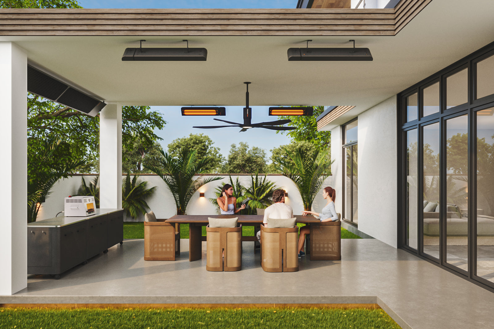 Engineered with medium wavelength infrared, the eSchwank Ghost reaches maximum heater temperature in seconds. It is built with marine-grade black aluminum and is IP65 outdoor rated.